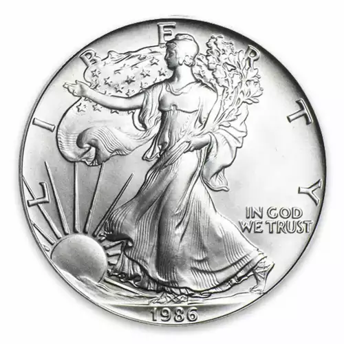 The 1986 1 oz American Silver Eagle contains 1 troy ounce of .999 fine silver and has a face value of $1. The innovative design and purity of these iconic silver coins make them highly popular among investors and collectors.