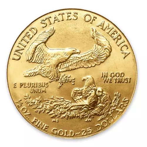 American Gold Eagle is the official gold bullion coin of the US. The weight, gold content, and purity of this coin are guaranteed by the Government of the United States of America. The 1987 1/2 oz American Gold Eagle is the second annual release of American Gold Eagle coins. This coin contains 1/2 Troy oz of fine gold content.