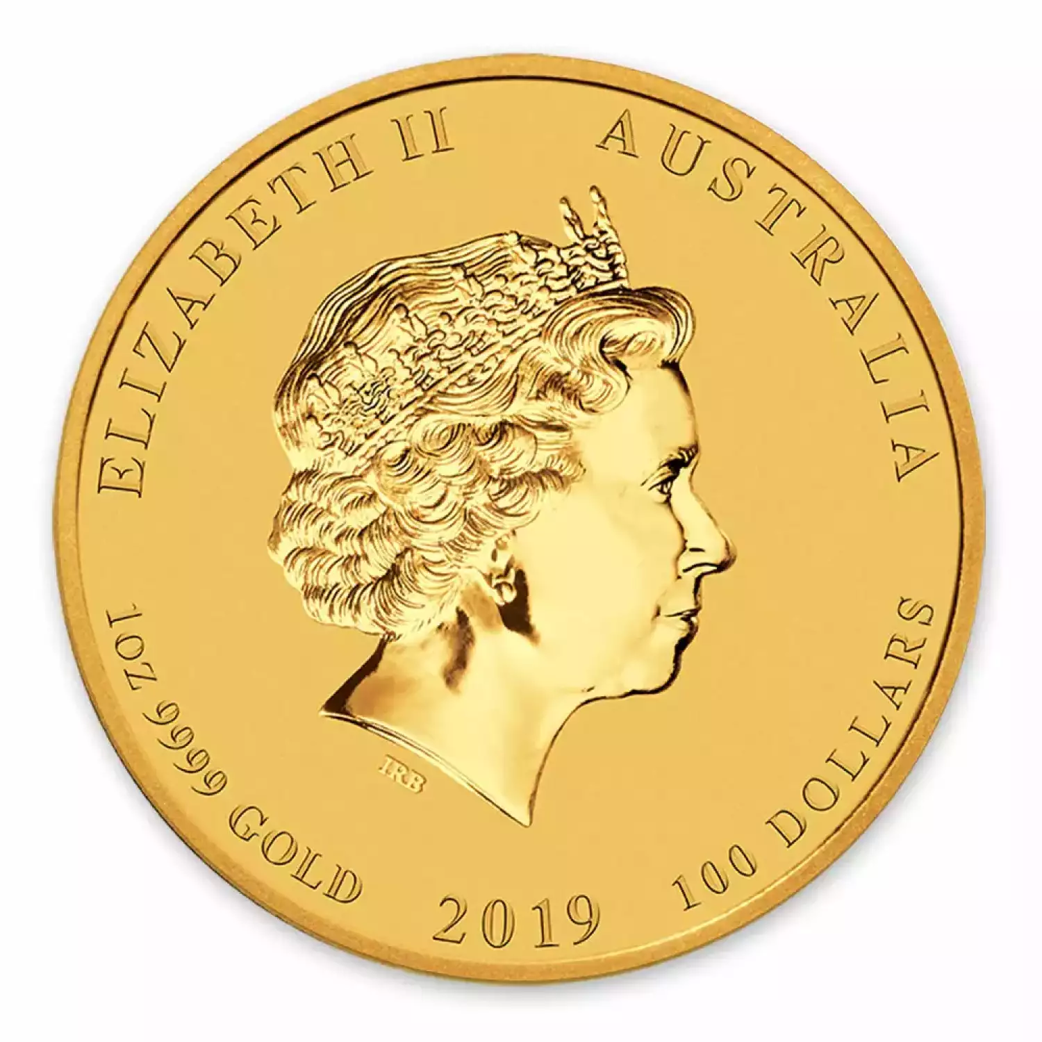 The 2019 1 oz Australian Perth Mint Gold Lunar: Year of the Pig is the final release of the Lunar Series I 12-Coin series and has a low mintage of only 7,694 coins. This bullion coin is composed of 1 Troy ounce of .9999 fine gold.