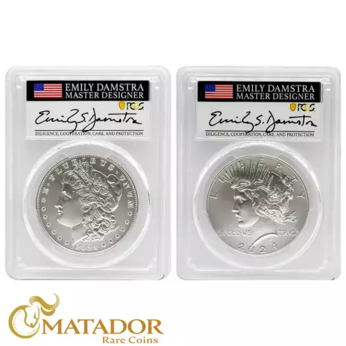 2024 $1 Morgan & Peace Set PCGS MS70 Advance Release Emily Damstra