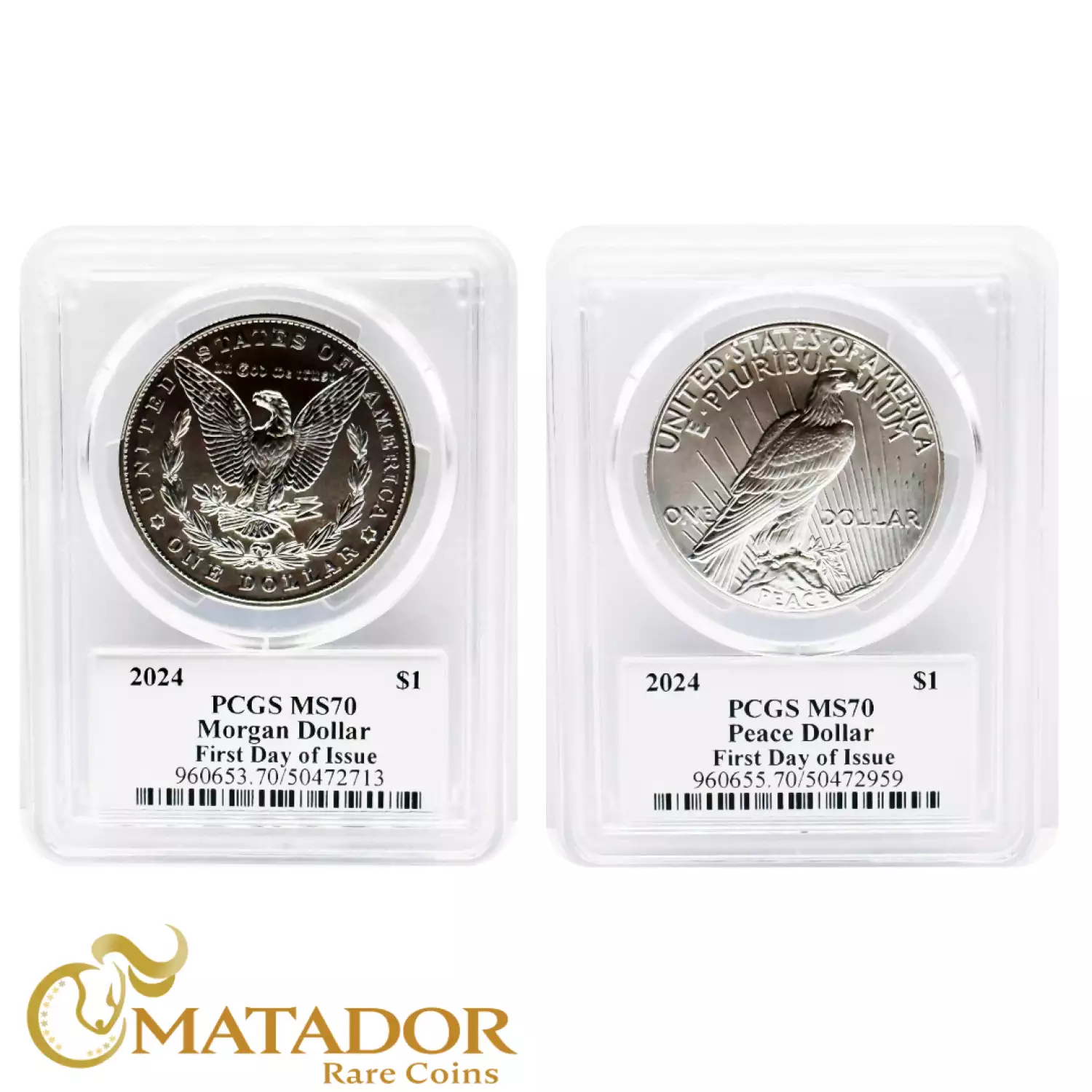 2024 $1 Morgan & Peace Set PCGS MS70 FDOI David Hall