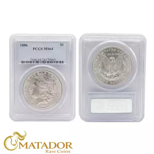 1886 Morgan Silver Dollar PCGS MS64 The 1886 Morgan Silver Dollar is a classic representation of late 19th-century American coinage, admired for its elegant design and historical significance. Graded MS64 by PCGS, this coin offers impressive quality with excellent luster, sharp details, and minimal marks, making it a desirable addition to any collection of Morgan Dollars. Key Features: Year: 1886 Mint: Philadelphia (No Mintmark) Grade: PCGS MS64 (Mint State 64), combining high quality with great visual appeal. Composition: 90% Silver, 10% Copper Diameter: 38.1 mm Weight: 26.73 grams